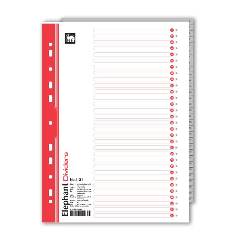 อินเด็กชนิดกระดาษสีขาวและพลาสติกสีเทา ตราช้าง รุ่น 1-31 Tab